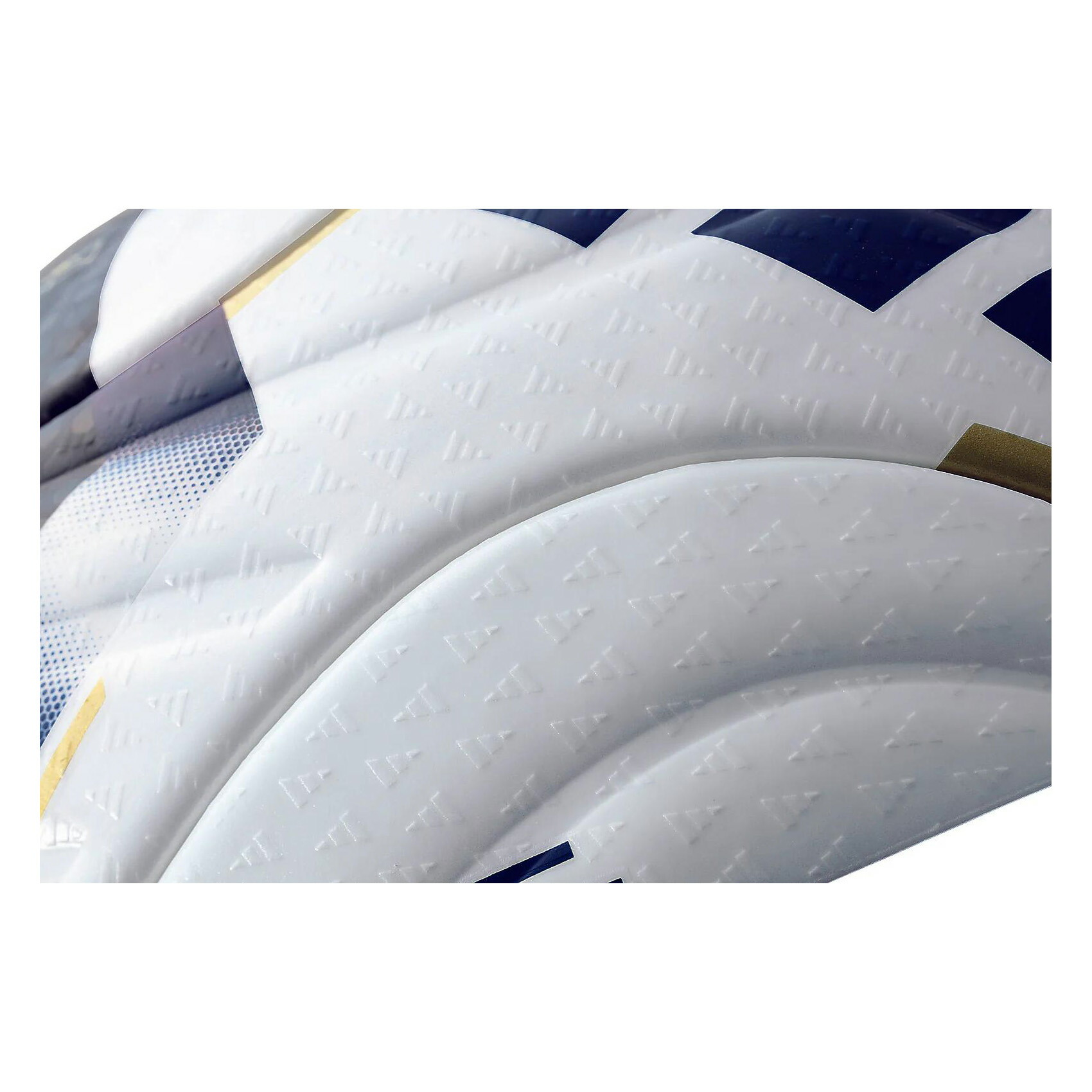 adidasロゴのエンボス加工と意図的に深いディボス加工が施されています。