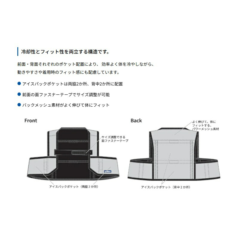 気温の高い環境で行う練習時に、上半身を効率よく冷やして暑熱対策をサポート。