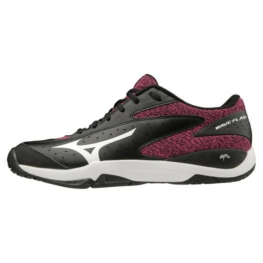 ミズノ(MIZUNO) テニスシューズ ウエーブフラッシュワイド OC 品番:61GB193101 カラー:01:ブラック×ホワイト×ピンク サイズ:23.0~28.5cm 素材 甲材:人工皮革・合成繊維 底材:合成底 質量:約330g(27.0cm片方) 対象/目的 砂入り人工芝・クレーコート用 インソール:カップインソール(取り外し可) シューズ幅:3E相当の方向け 原産国:ベトナム製