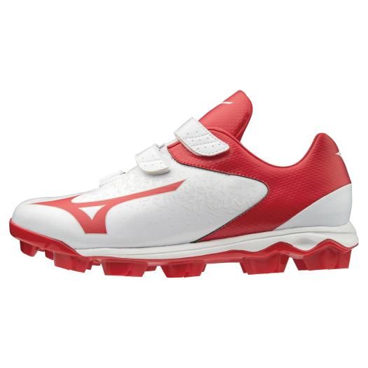 ミズノ(MIZUNO) ポイントスパイク ウエーブセレクトナインBLT 品番:11GP202062 カラー:62:ホワイト×レッド サイズ:23.0~28.0cm 素材 甲材:人工皮革 底材:合成底 合成樹脂 インソール:GCLインソール(取り外し可) シューズ幅:3E相当の方向け 原産国:インドネシア製