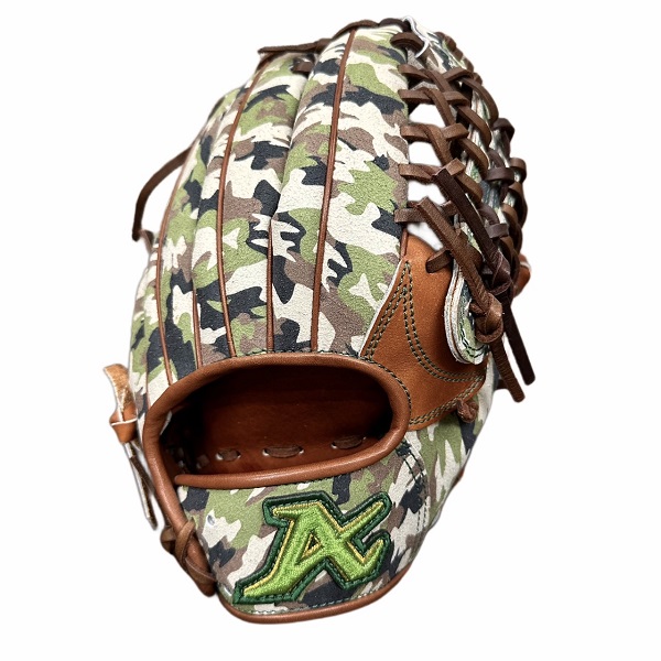 素材にこだわるアトムズより、カモフラ柄を昇華加工した「バリュアブルホッカイドウジャパンレザー」を採用した、限定グラブです。 使い込むほどになじむしっかりしたレザーと、安心感のある大きさが特徴のグラブです。