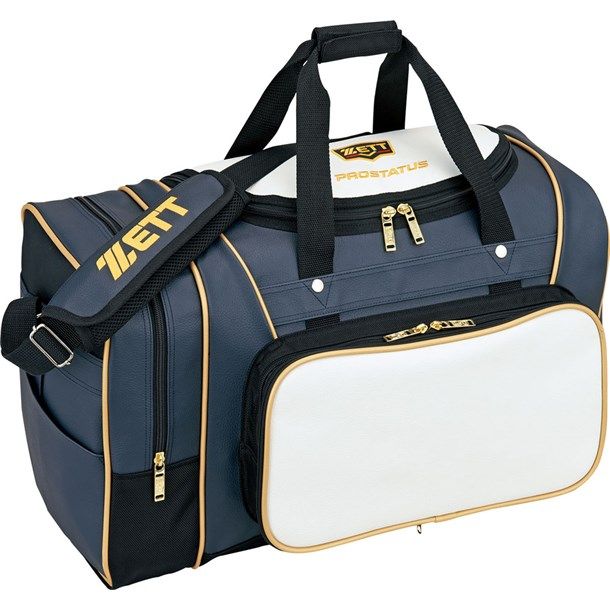 ゼット(ZETT) プロステイタス ミドルバッグ 品番:BAP620 カラー:ホワイト×ダークネイビー(1130) サイズ:長さ55×高さ33×巾26cm 容量:約51リットル(本体 約40リットル+ポケット 約11リットル) 素材:合成皮革(PVC)、底部・背面:1680Dナイロン 機能・特徴 フロントポケット取り外し式(縦20×横38cm) フロントポケット内マルチポケット付き 左サイドポケット付き 原産国:中国