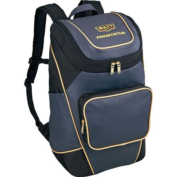 ゼット(ZETT) プロステイタス デイパック 品番:BAP420 カラー:ダークネイビー(3000) サイズ:長さ32×高さ54×巾22cm 容量:約40リットル(本体 約38リットル+ポケット 約2リットル) 素材:合成皮革(PVC)、底部・ショルダー部:1680Dナイロン 機能・特徴 フロントポケット取り外し式(縦19×上辺26cm、下辺22cm) フロントポケット内マルチポケット付き 両サイド挿し込みポケット付き チェストベルト付き 原産国:中国
