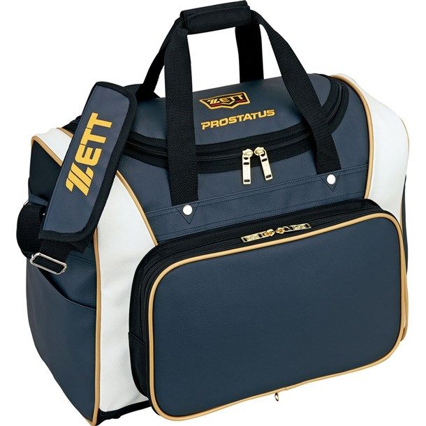 ゼット(ZETT) プロステイタス セカンドバッグ 品番:BAP520 カラー:ダークネイビー×ホワイト(3011) サイズ:長さ47×高さ34×巾24cm 容量:約42リットル(本体 約38リットル+ポケット 約4リットル) 素材:合成皮革(PVC)、底部・背面:1680Dナイロン 備考 フロントポケット取り外し式(縦20×横38cm) フロントポケット内マルチポケット付き 左サイドポケット付き 原産国:中国