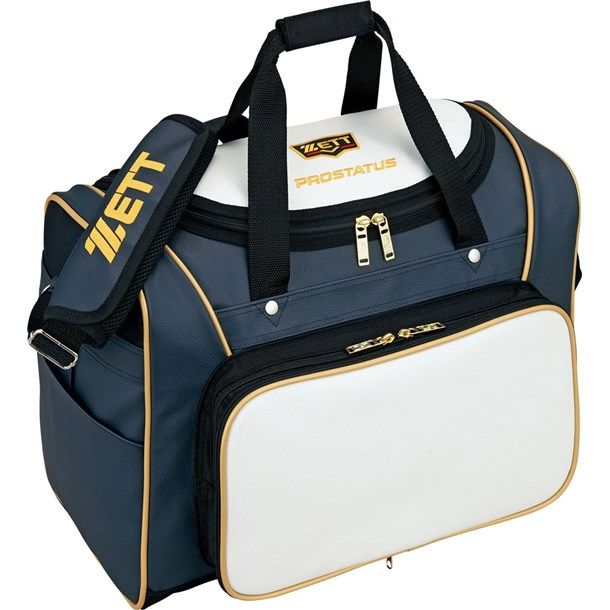 ゼット(ZETT) プロステイタス セカンドバッグ 品番:BAP520 カラー:ホワイト×ダークネイビー(1130) サイズ:長さ47×高さ34×巾24cm 容量:約42リットル(本体 約38リットル+ポケット 約4リットル) 素材:合成皮革(PVC)、底部・背面:1680Dナイロン 備考 フロントポケット取り外し式(縦20×横38cm) フロントポケット内マルチポケット付き 左サイドポケット付き 原産国:中国