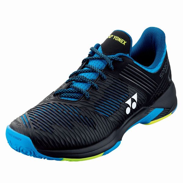 ヨネックス(YONEX) テニスシューズ パワークッション ソニケージ2 ワイド GC 品番:SHTS2WGC カラー:ブラック/ブルー(188) サイズ:22.0~29.0cm 素材 アッパー:合成繊維+合成樹脂 ミッドソール:合成樹脂 アウトソール:ゴム底 足幅:4Eワイド 原産国:中国