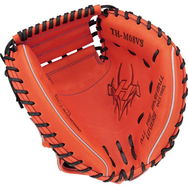 ハタケヤマ(HATAKEYAMA) 軟式野球 キャッチャーミット 品番:TH-M08VS カラー:Vオレンジ 素材 表革:北米ステアハイド 裏革:共牛革 左右:右投用 機能:特徴 シェラームーブ ピンキーパターン ロングタイプ指カバー 基本モデル:M8型 ポジション:捕手用 原産国:台湾