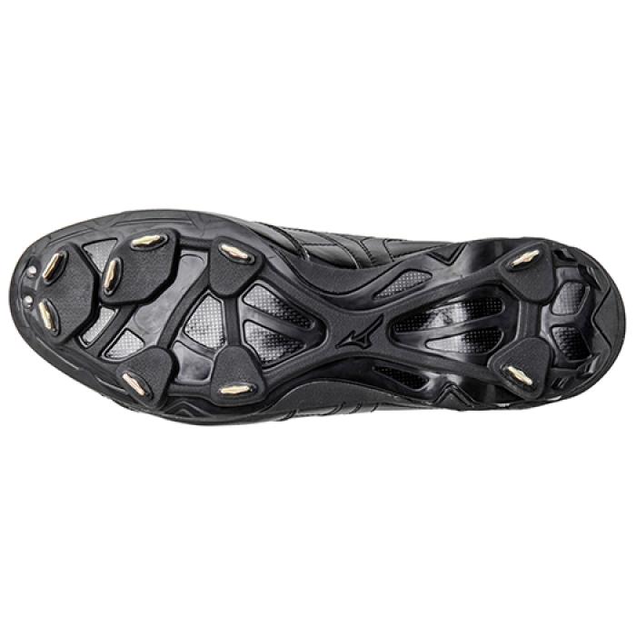 品番:11GM1401 カラー:00(ブラック×ブラック) サイズ:25.5〜29.0cm 甲材:人工皮革 補強:人工皮革 底材:合成底 アウトソール:合成底 ミッドソール:合成樹脂(熱成型E.V.A.スポンジ) スパイク:金属製(9 SPIKE Advanced 超硬チップ付金具固定式) 付属品:シューズ袋 、シューズキーパー 原産国:中国製
