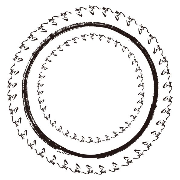 ・円(CIRCLE) 毛筆書の「円」は日本らしさを表わし、外側と内側の円は「和」の書によって形成されています。円を三重で描くことにより、歓びに満ちた場所が波状に広がるさまを表現しています。