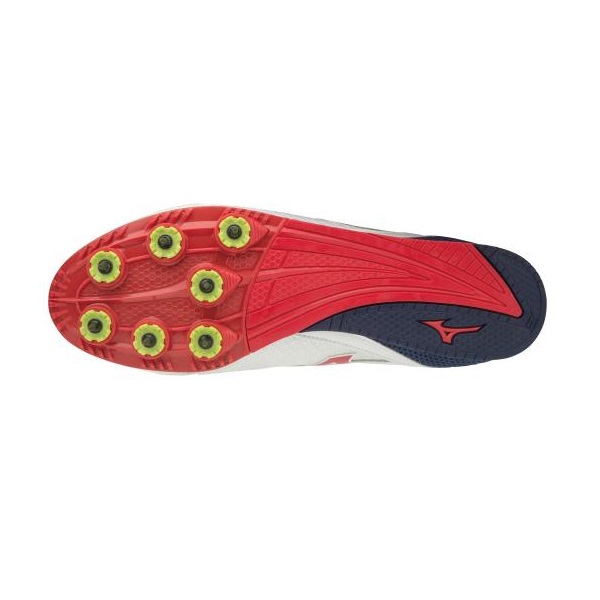 品番:U1GA1630 カラー:18(ホワイト×レッド×ネイビー) サイズ:21.0~29.0cm(2E相当) 質量:230g(26.0cm片方) 甲材:合成繊維、人工皮革 底材:合成底 スパイクピン:8ZA306(12mm) レンチ:8ZA309 アタッチメント:U1GZ180700 ピンカバー:8ZA115 競技種目:トラック種目全般、走幅跳用 競技場:オールウェザー、アンツーカ(土)兼用 原産国:ベトナム製