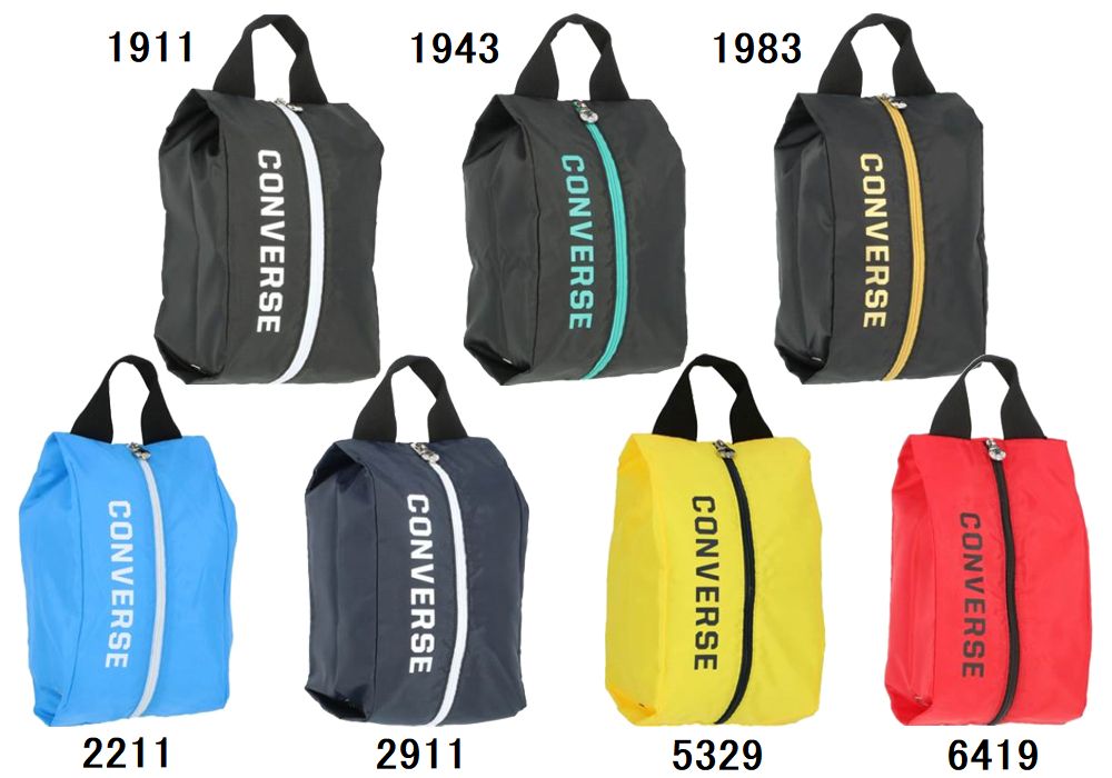 コンバース(converse) シューズケース 品番:C2001097 カラー (1911)ブラック/ホワイト (1943)ブラック/エメラルド (1983)ブラック/ゴールド (2211)サックス/ホワイト (2911)ネイビー/ホワイト (5329)イエロー/ネイビー (6419)レツド/ブラック 素材:ポリエステル サイズ:W31×H17×D15cm 原産国:中国