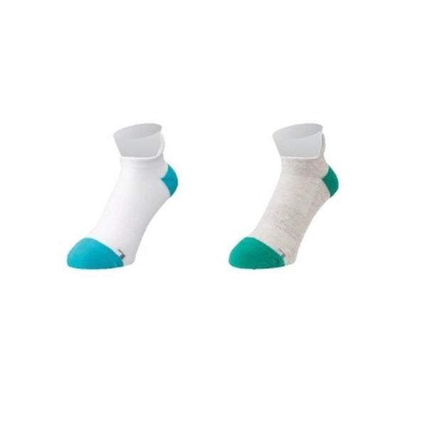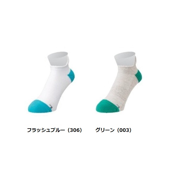品番:19136 カラー:フラッシュブルー(360)/グリーン(003) 素材:綿54%、アクリル24%、ポリエステル18%、ポリウレタン3%、ナイロン1% サイズ:25~28cm 機能:3Dエルゴ、直角型、防菌防臭、つま先・かかとパイル、砂入れ防止
