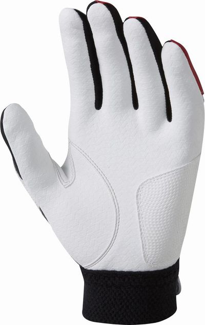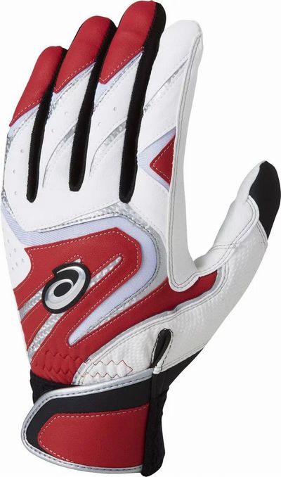 アシックス(asics)ベースボール バッティング用手袋(両手用) ネオリバイブ 品番:BEG272 カラー:ホワイト×レッド(0123) サイズ:JS(16-17cm)・JM(18-19cm)・JL(20-21cm)・S(22-23cm)・M(24-25cm)・L(26-27cm) 素材:合成皮革、ポリエステル、ナイロン 機能・特徴 立体構造 逆巻きベルト 当て革補強 ウォッシャブル 原産国:インドネシア製