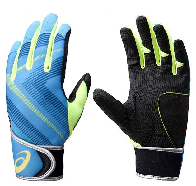 アシックス(asics)ジュニア用 バッティング用手袋(両手用) 品番:BEG26J カラー:スカイブルー×イエロー(4104) サイズ:JS(16-17cm)、JM(18-19cm)、JL(20-21cm) 素材 ひら:合成皮革 甲:合成皮革・ポリエステル