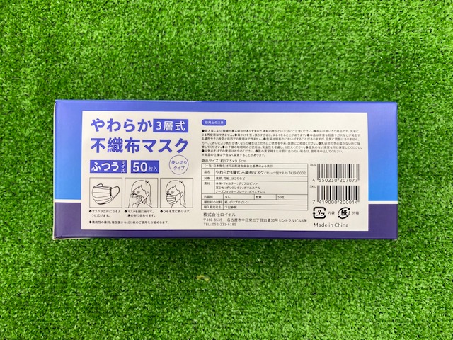 やわらか3層式不織布マスク 99%カットフィルター カラー:ホワイト サイズ:約17.5×9.5cm(大人用レギュラーサイズ) 素材 本体・フィルター:ポリプロピレン 耳ひも:ポリウレタン、ポリエステル ノーズフィッタープレート:ポリエチレン 内容量:1箱(50枚入り) 10枚袋入り×5袋パッケージ