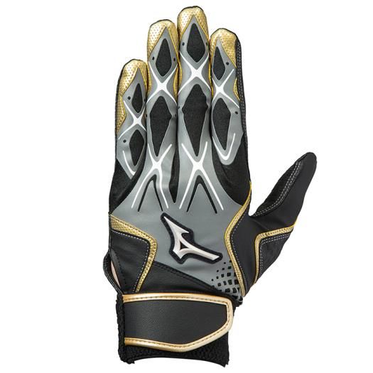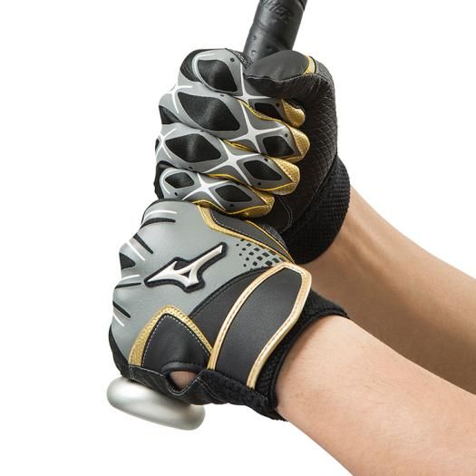ミズノ(MIZUNO) バッティング手袋 セレクトナイン 両手用 品番:1EJEA14005 カラー:05:グレー×ブラック×ゴールド サイズ:S(22~23cm)、M(24~25cm)、L(26~27cm) 素材 掌部:合成皮革 当て革部:合成皮革 甲部:ポリエステル、ナイロン、ポリウレタン、合成皮革 機能:特徴 当て革補強付き 優れたフィット感を実現 オリジナルダイヤエンボス合皮 原産国:ベトナム製、カンボジア製、フィリピン製