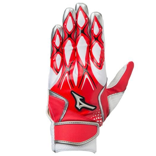 ミズノ(MIZUNO) バッティング手袋 セレクトナイン 両手用 品番:1EJEA14062 カラー:62:レッド×ホワイト×シルバー サイズ:S(22~23cm)、M(24~25cm)、L(26~27cm) 素材 掌部:合成皮革 当て革部:合成皮革 甲部:ポリエステル、ナイロン、ポリウレタン、合成皮革 機能:特徴 当て革補強付き 優れたフィット感を実現 オリジナルダイヤエンボス合皮 原産国:ベトナム製、カンボジア製、フィリピン製