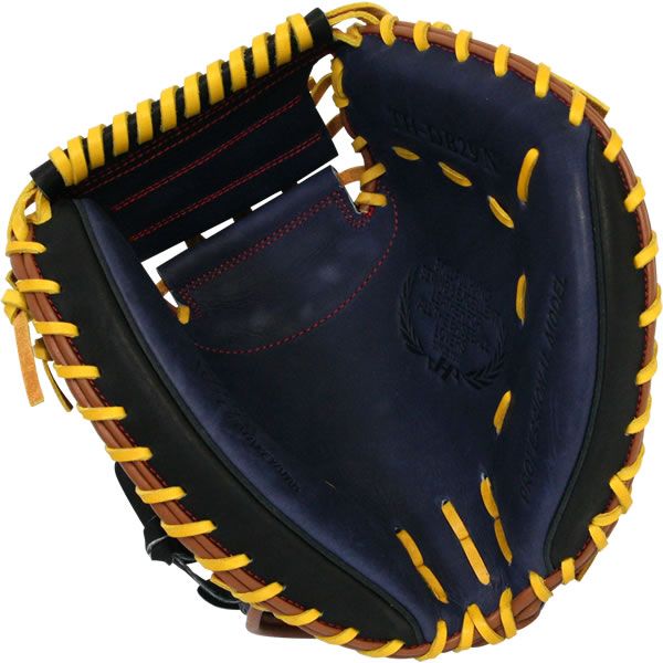 ハタケヤマ(HATAKEYAMA)伊藤光モデル(横浜DeNAベイスターズ) 軟式野球用キャッチャーミット 品番:TH-DB29N カラー:ネイビー×ブラック 左右:右投用 ポジション:捕手用 素材:表革(北米ステアハイド)、裏革(牛革) 基本モデル:M8型 刻印 刻印には「ALL THE BASEBALL LOVERS」の文字を使用。野球を愛するすべてのプレイヤーのために、広く、親しみやすい存在でいたいという想いを込めています。 機能・特徴 シェラームーブ キャッチャーミットの甲の蛇腹状のデザインは、キャッチャーミットならではの掴む動きを円滑にするための形。甲殻類の滑らかで力強い動きを参考に生まれました。 ピンキーパターン ハタケヤマ独自のパターン。ヘリ革部分を伸ばし、スリットを入れることにより、従来よりも耐久性がアップ。また紐を緩めることにより、手入れ部分の大きさの調整も可能になります。 座ブトンスポンジ 指カバー部に衝撃吸収材を入れる特別仕様の機能。捕球時の人差指への衝撃を軽減します。 原産国:台湾