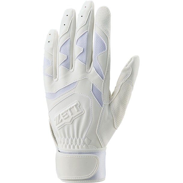 ゼット(ZETT) ネオステイタス 高校野球対応 バッティング手袋 両手用 品番:BG794HS カラー:ホワイト(1100) サイズ:S(22-23cm)、M(24-25cm)、L(26-27cm) 素材:甲側/合成皮革×掌側/合成皮革(エンボス加工)+当て革/合成皮革(エンボス加工) 機能:ウォッシャブル 原産国:フィリピン