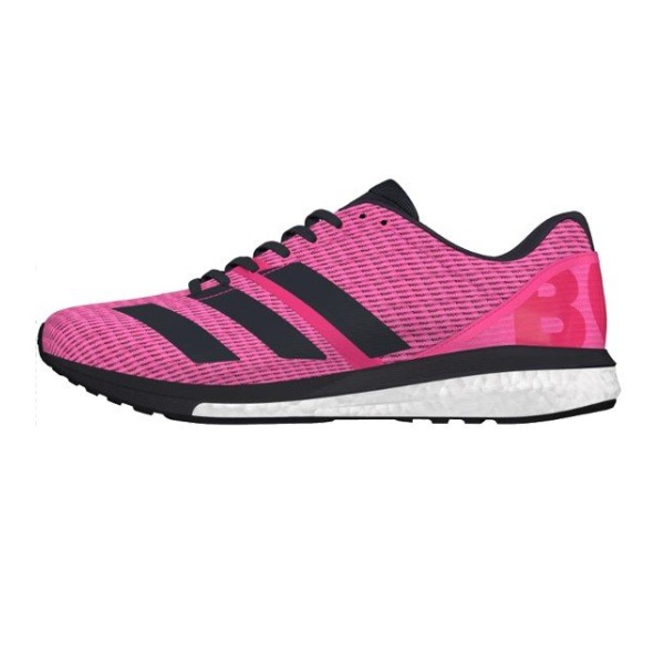 品番:F34059 カラー:ショックピンク F18/コアブラック/ランニングホワイト サイズ:25.0~28.5cm 素材:合成繊維 ソール:ゴム底 重量:244g(27cm 片足重量) 生産国:中国
