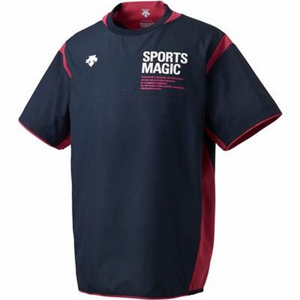 デサント(DESCENTE) バレーボール 半袖プラクティスシャツ 品番:DVULJK30 カラー:Dネイビー(DNVY) サイズ:S、M、L、O、XO 素材:エステルライトタフタ、ストレッチメッシュ2 機能:防風、軽量