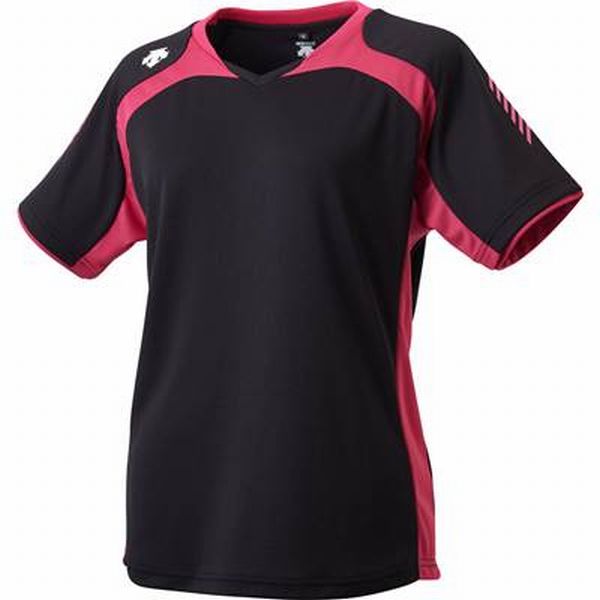 デサント(DESCENTE) バレーボール レディ―ス 半袖プラクティスシャツ 品番:DVWLJA51 カラー:ブラック×マゼンタ(BMZ) サイズ:S、M、L、O、XO 素材:エアードライメッシュ、ドライリバースメッシュ2(ポリエステル100%) 機能:吸汗、速乾