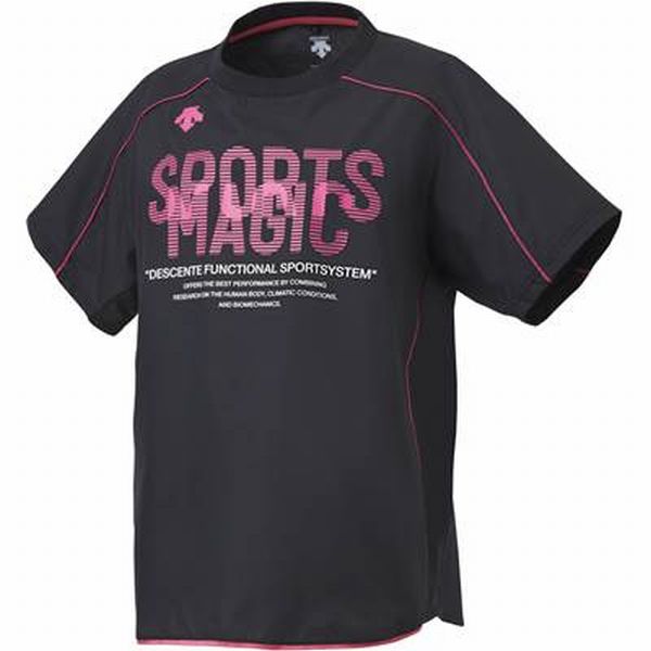 デサント(DESCENTE) バレーボール レディ―ス 半袖ピステシャツ 品番:DVWMJK30 カラー:ブラック×マゼンタ(BK) サイズ:S、M、L、O、XO 素材:エステルライトタフタ(ポリエステル100%) 機能:防風、軽量
