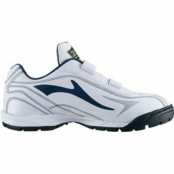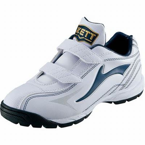 ゼット(ZETT) 野球 ジュニアトレーニングシューズ ランゲット DX2 品番:BSR8206J カラー:1129:ホワイト×ネイビー サイズ:19.0、20.0、21.0〜23.0cm 素材 アッパー本体:人工皮革製(エナメル) 補強:人工皮革製(エナメル) アウトソール:合成ゴム製 ミッドソール:熱成型EVAスポンジ 機能:屋外の土のグランドでも滑りにくいマルチスタッドタイプのアウトソール 原産国:中国
