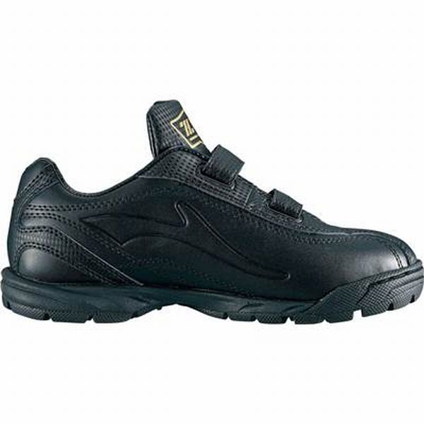 ゼット(ZETT) 野球 ジュニアトレーニングシューズ ランゲット DX2 品番:BSR8206J カラー:1919:ブラック×ブラック サイズ:19.0、20.0、21.0〜23.0cm 素材 アッパー本体:人工皮革製(エナメル) 補強:人工皮革製(エナメル) アウトソール:合成ゴム製 ミッドソール:熱成型EVAスポンジ 機能:屋外の土のグランドでも滑りにくいマルチスタッドタイプのアウトソール 原産国:中国