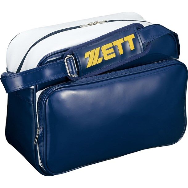 ゼット(ZETT) セカンドバッグ ショルダータイプ 品番:BA596 カラー:ネイビー×ホワイト(2911) サイズ:長さ40×高さ32×巾18cm 容量:約22リットル(本体約38L+ポケット約4L) 素材:合成皮革(PVCエナメル) 機能・特徴 フロントポケット取り外し式(縦22×横40cm) フロントポケット内マルチポケット付き 背面内仕切りポケット付き 原産国:ベトナム