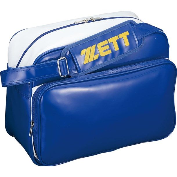 ゼット(ZETT) セカンドバッグ ショルダータイプ 品番:BA596 カラー:ブロンズブルー×ホワイト(2011) サイズ:長さ40×高さ32×巾18cm 容量:約22リットル(本体約38L+ポケット約4L) 素材:合成皮革(PVCエナメル) 機能・特徴 フロントポケット取り外し式(縦22×横40cm) フロントポケット内マルチポケット付き 背面内仕切りポケット付き 原産国:ベトナム
