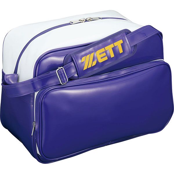 ゼット(ZETT) セカンドバッグ ショルダータイプ 品番:BA593 カラー:パープル×ホワイト(7411) サイズ:長さ45×高さ34×巾25cm 容量:約42リットル(本体約38L+ポケット約4L) 素材:合成皮革(PVCエナメル) 機能・特徴 フロントポケット取り外し式(縦22×横45cm) フロントポケット内マルチポケット付き 背面内仕切りポケット付き 原産国:ベトナム