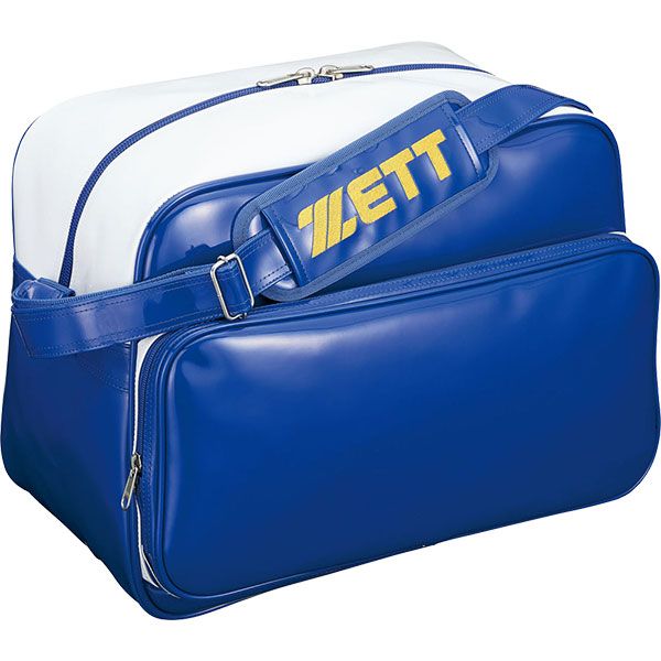 ゼット(ZETT) セカンドバッグ ショルダータイプ 品番:BA593 カラー:ブロンズブルー×ホワイト(2011) サイズ:長さ45×高さ34×巾25cm 容量:約42リットル(本体約38L+ポケット約4L) 素材:合成皮革(PVCエナメル) 機能・特徴 フロントポケット取り外し式(縦22×横45cm) フロントポケット内マルチポケット付き 背面内仕切りポケット付き 原産国:ベトナム