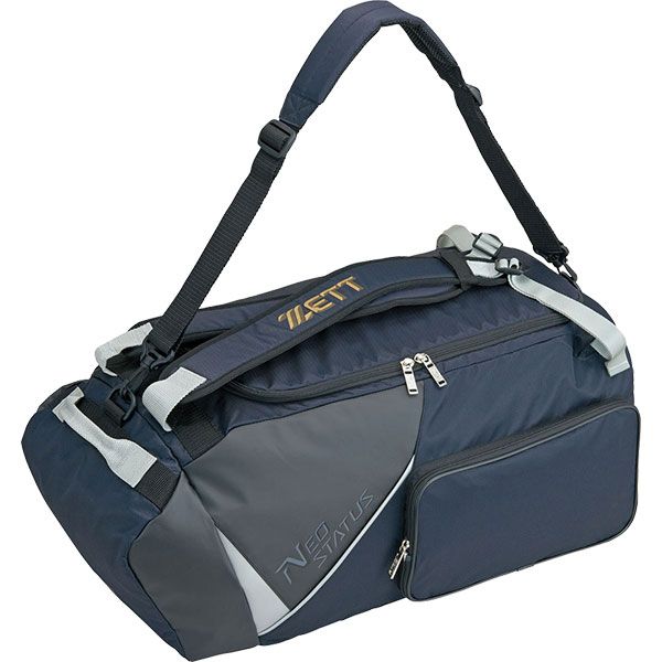 ゼット(ZETT) ネオステイタス 3WAYバッグ 品番:BAN620 カラー:ネイビー(2900) サイズ:長さ65×高さ28×巾28cm 容量:約52リットル(本体 約51リットル+ポケット約1リットル) 素材:ナイロン、ポリエステル 機能・特徴 フロントポケット取り外し式(縦17×横31cm) フロントポケット内マルチポケット付き 天面ショルダー(取り外し可能)&背負いベルト付き 原産国:中国