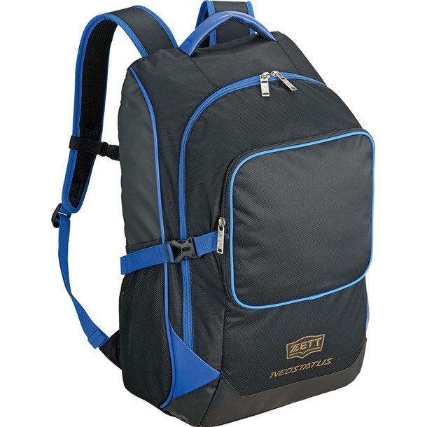 ゼット(ZETT) ネオステイタス デイパック 品番:BAN420 カラー:ブラック/Rブルー(1925) 素材:ナイロン、ポリエステル サイズ:長さ32×高さ54×巾23cm 容量:約39L 機能・特徴 フロントポケット取り外し式(縦21×横25cm) フロントポケット内小物ポケット付き 両サイドメッシュポケット付き チェストベルト付き 原産国:中国