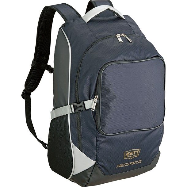 ゼット(ZETT) ネオステイタス デイパック 品番:BAN420 カラー:ネイビー(2900) 素材:ナイロン、ポリエステル サイズ:長さ32×高さ54×巾23cm 容量:約39L 機能・特徴 フロントポケット取り外し式(縦21×横25cm) フロントポケット内小物ポケット付き 両サイドメッシュポケット付き チェストベルト付き 原産国:中国
