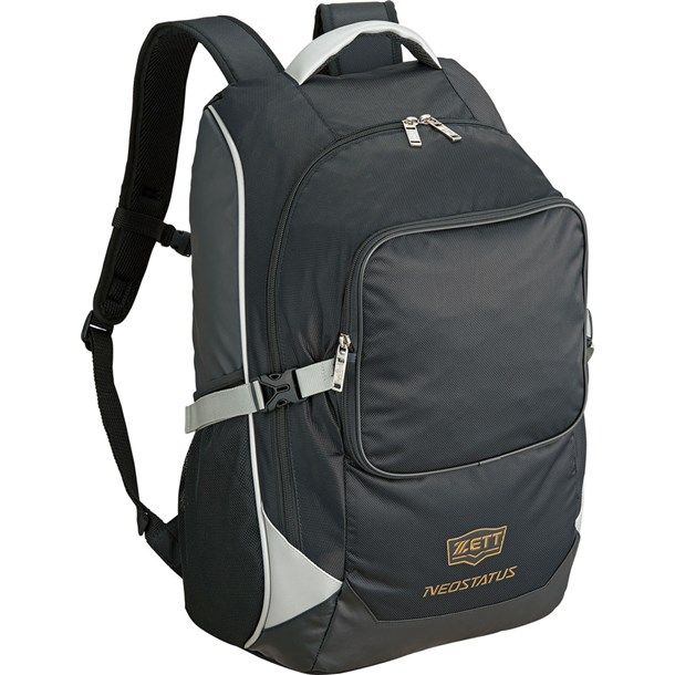 ゼット(ZETT) ネオステイタス デイパック 品番:BAN420 カラー:ブラック(1900) 素材:ナイロン、ポリエステル サイズ:長さ32×高さ54×巾23cm 容量:約39L 機能・特徴 フロントポケット取り外し式(縦21×横25cm) フロントポケット内小物ポケット付き 両サイドメッシュポケット付き チェストベルト付き 原産国:中国