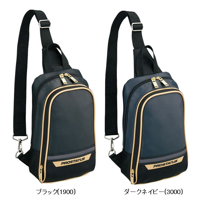 ゼット(ZETT) プロステイタス ボディバッグ 品番:BAP7019 カラー:ブラック(1900)、ダークネイビー(3000) サイズ:長さ17×高さ32×巾8 容量:約4リットル 素材:合成皮革(PVC)、ナイロン 機能:反射テープ付き(フロント部) 原産国:中国