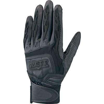 ゼット(ZETT) 野球 バッティンググラブ(両手用) 品番:BG418HS カラー:(1900)ブラック サイズ:S(22~23cm)、M(24~25cm)、L(26~27cm) 素材 甲側/合成皮革×掌側/合成皮革(エンボス加工)+当て革/合成皮革(エンボス加工) 機能:ウォッシャブル、生地二重(当て革)補強(親指・掌の2箇所) 高校野球対応 原産国:ベトナム