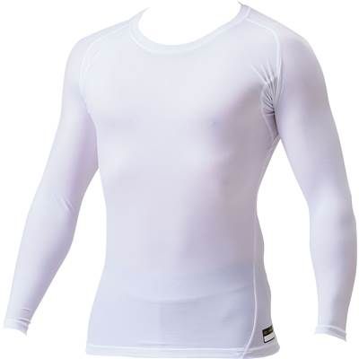 ゼット(ZETT) プロステイタス クルーネック長袖 コンプレッションアンダーシャツ 品番:BPRO800C カラー:(1100)ホワイト サイズ:SS、S、M、L、O、XO 素材:ポリエステル86%、ポリウレタン14%(PCWドライストレッチニット) 機能:ストレッチ、吸汗速乾、軽量、やわらかい、消臭 ベトナム製/日本製