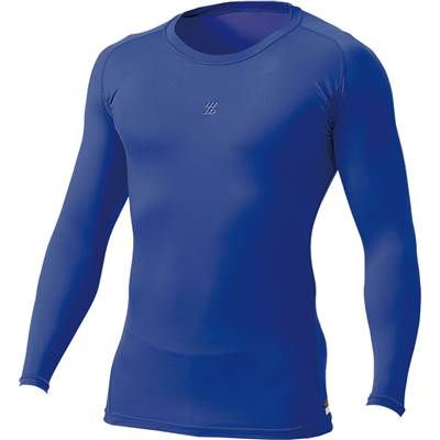 ゼット(ZETT) プロステイタス クルーネック長袖 コンプレッションアンダーシャツ 品番:BPRO800C カラー:(2500)ロイヤルブルー サイズ:SS、S、M、L、O、XO 素材:ポリエステル86%、ポリウレタン14%(PCWドライストレッチニット) 機能:ストレッチ、吸汗速乾、軽量、やわらかい、消臭 ベトナム製/日本製