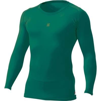 ゼット(ZETT) プロステイタス クルーネック長袖 コンプレッションアンダーシャツ 品番:BPRO800C カラー:(4800)グリーン サイズ:SS、S、M、L、O、XO 素材:ポリエステル86%、ポリウレタン14%(PCWドライストレッチニット) 機能:ストレッチ、吸汗速乾、軽量、やわらかい、消臭 ベトナム製/日本製