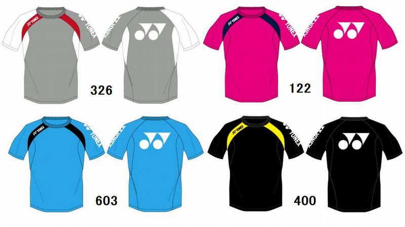ヨネックス(YONEX) Tシャツ 品番:YOB17012 カラー ブライトピンク(122) アイスグレー(326) ブラック/イエロー(400) ウォーターブルー(603) サイズ:S、M、L 素材:ポリエステル100% インドネシア製