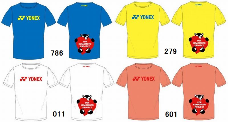 ヨネックス(YONEX) Tシャツ 品番:YOB17014 カラー ホワイト(011) ライトイエロー(279) コーラル(601) ブラストブルー(786) サイズ:S、M、L 素材:ポリエステル100% インドネシア製