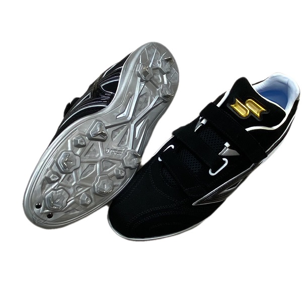 品番:ESF3017 カラー:9095(ブラック×シルバー) サイズ:25.0〜29.0、30.0cm(29.5cm規格外) アッパー:人工皮革・合成繊維 アウトソール:合成樹脂 ミッドソール:合成樹脂 スパイク:金属製 付属品:スパイク袋 生産国:ベトナム