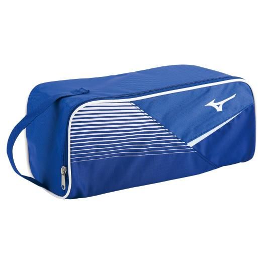 ミズノ(MIZUNO) シューズケース 品番:33JM042227 カラー:27:ブルー×ホワイト 素材:ポリエステル(裏加工PU) サイズ:L34×W15×H16cm 重量:約100g 原産国:ベトナム製