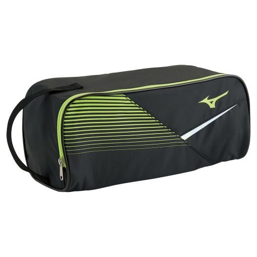 ミズノ(MIZUNO) シューズケース 品番:33JM042294 カラー:94:ブラック×ライム 素材:ポリエステル(裏加工PU) サイズ:L34×W15×H16cm 重量:約100g 原産国:ベトナム製