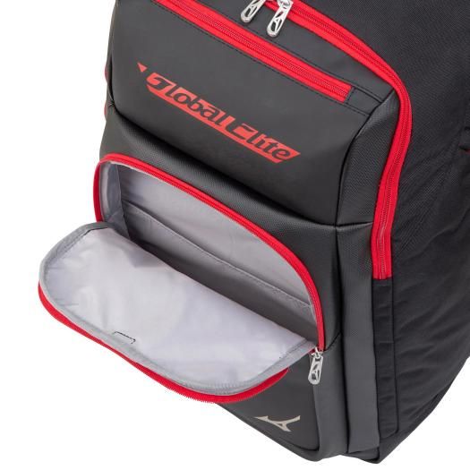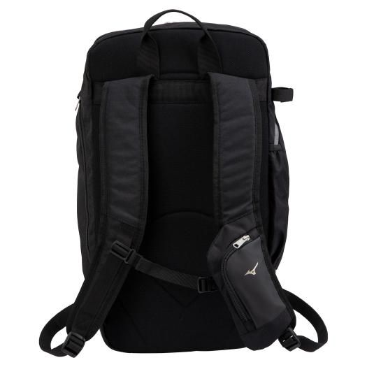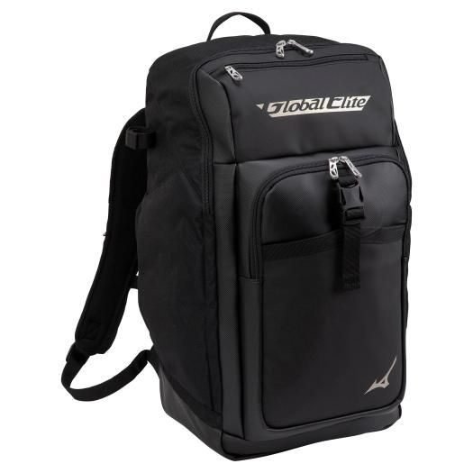 ミズノ(MIZUNO) グローバルエリート オールインワンバックパック 品番:1FJD080190 カラー:90:ブラック×ブラック サイズ:L30×W20×H55cm 容量:約35L 重量:約1070g 素材:ポリエステル(裏加工PU)・合成皮革(PU) 原産国:ベトナム製