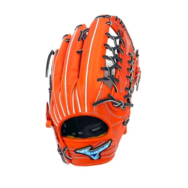 品番:1AJGH23007 カラー:52(スプレンディッドオレンジ) 素材:プレキシーキップレザー(天然皮革:牛革) サイズ:18N ポジション:外野手用(上林型) 左右:右投用 付属品:専用袋 原産国:日本製