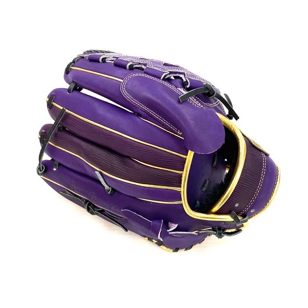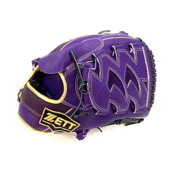 品番:BRGB31041 カラー:7482(パープル×ゴールド) 素材:天然皮革製、(表)RGレザー、(平裏)RGレザー ポジション:投手用(右投用) サイズ:4 詳細:こちらの商品には、グラブ袋が付いておりません。 原産国:ベトナム製